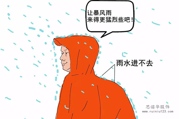 雨衣防水——在以前,如果登山時遇到下雨,登山者只能穿上雨衣。雨衣表面光滑封閉,雨水根本進不去,所以可以防雨。