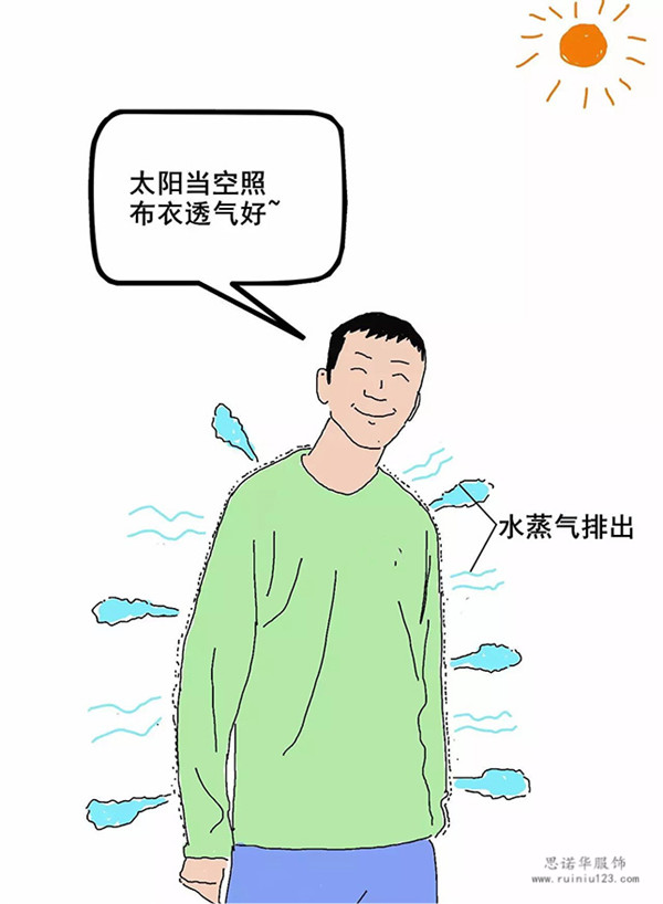 雨衣封閉,雨滴進不去。布衣有空隙,水蒸氣能出去。