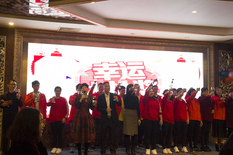 睿牛制衣有限公司總經(jīng)理華姐攜管理人員向全場嘉賓敬酒,隨著激動人心的抽獎及歌舞助興,再次將年會的氣氛推向了高潮!