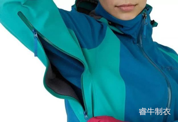 多數(shù)沖鋒衣都有設(shè)計(jì)在腋下散熱拉鏈的,它的作用是讓使用者在戶外活動(dòng)中,根據(jù)實(shí)際使用情況調(diào)節(jié)服裝內(nèi)的溫度。對(duì)于專業(yè)沖鋒衣來(lái)說(shuō),拉鏈一般都采用防水功能的產(chǎn)品。而滑雪服因?yàn)槠溥\(yùn)動(dòng)的特點(diǎn),一般是把拉鏈設(shè)計(jì)在胸口附近或者上肢的前方。和沖鋒衣的相同的是?;┓母邫n產(chǎn)品也使用防水拉鏈。