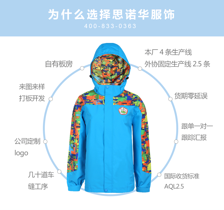 睿牛戶外服飾—根據(jù)客戶要求批量加工校服沖鋒衣定制